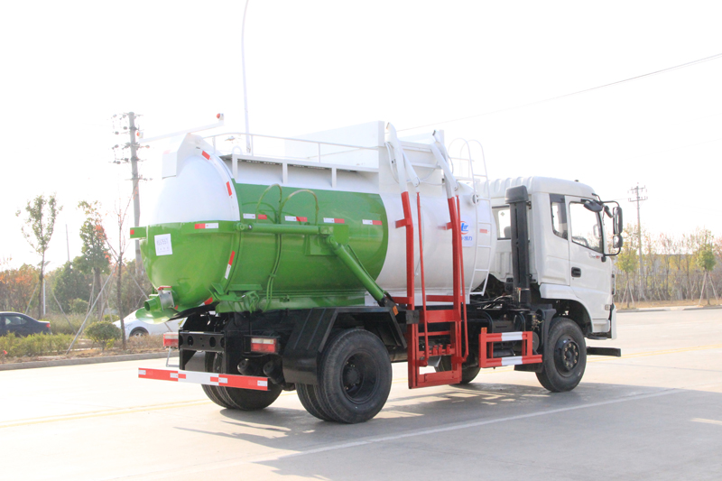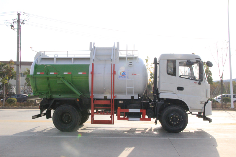 罐體容積8~10m3,罐體厚度4.5mm,配備120L/240L掛桶提升翻轉(zhuǎn)機(jī)構(gòu),液壓系統(tǒng),后蓋液壓鎖緊開啟,罐體可以舉升自卸,尾部帶自流閥;用于運(yùn)輸液態(tài)垃圾,其特點(diǎn)操作簡單,密封性好,無泄漏,無異味;可選裝固液分離功能,推板擠壓功能,常用于餐館的垃圾轉(zhuǎn)運(yùn)處理。