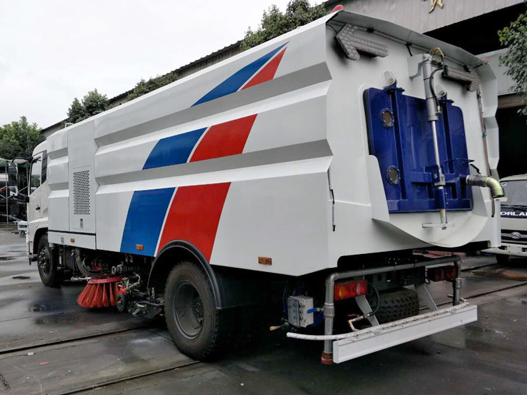 中置2掃盤、吸嘴、三洋馬達、德國原裝進口高壓水泵(前沖、側噴、中噴、后噴霧、側沖洗車水槍、垃圾箱自潔裝置)、萬向高壓路沿清洗、低壓泵前沖、不銹鋼水箱、垃圾箱;不銹鋼高壓管路、施耐德控制開關、美國傳感器、尾部LED箭頭燈、機油、垃圾箱、水箱均帶防溢或低水位報警裝置;倒車及洗掃狀態駕駛室內監視器、18m高壓沖洗卷盤、最大洗掃寬度3.5m;高壓沖洗高度≥21m。
