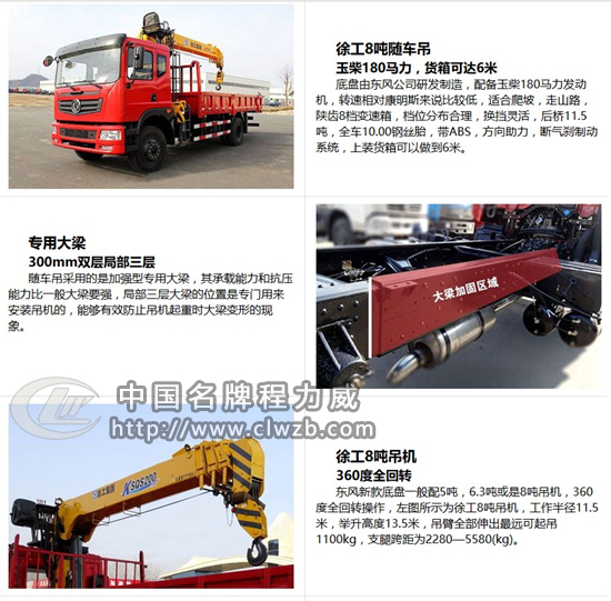 僅選用3800,3950,4700,5100,5600軸距;僅選用10.00-20,10.00R20輪胎;隨底盤選裝駕駛室.選裝箱板結構,選裝上/中座椅操作,可選裝直臂式或折臂式吊機,直臂式吊機:型號/吊機質量(kg)/最大起升載荷(kg)/載質量(kg)分別為:(SPS15800,SQ114,QYS-6.3III,SQS-6.3III,URV630,nicoleV630)/2102/4500/3290(2人),3255(3人);2.(SPS20000,SQ200,QYS-8,SQS-8III,URV800,nicoleV800)/3300/5500/4290(2人),4225(3人);折臂式吊機的分別為:1.(SQ6.3Z,QYS-6.3Z)/2300/4500/3290(2人),3255(3人);2.(SQ8Z, QYS-8Z)/3500/5500/4290(2人),4225(3人);外形尺寸/軸距/前懸/后懸對應關系分別為:7100/3800/1250/2050(1450/1850),7350/3950/1250/2150(1450/1950),8530/4700/1250/2580(1450/2380),9000/5100/1250/2650(1450/2550),9000/5600/1250/2150(1450/1950);發動機對應油耗值為:YC6J180-50/24.3L/100km,YC4EG160-50/24.8L/100km,ISD185 50/24.7L/100km,ISD210 50/24.5L/100km,CA4DLD-15E5/24.0L/100km;側防護:材質Q235,連接方式螺栓連接.后下防護:材質Q235,連接方式焊接連接,斷面尺寸120?0mm,離地高度520mm;該車應安裝具有衛星定位功能的行駛記錄儀.ABS型號為:3631010-C2000,生產廠家為:東科克諾爾商用車制動系統(十堰)有限公司.