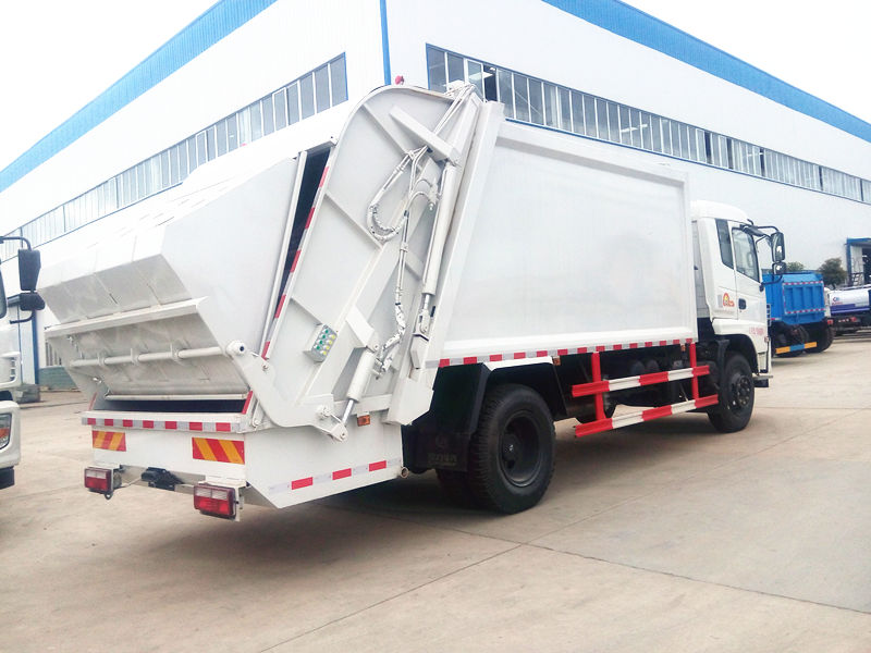 壓縮式垃圾車采用機(jī)電液一體化技術(shù),借助機(jī)、電、液聯(lián)合自動(dòng)控制系統(tǒng)、電腦控制、手動(dòng)操作系統(tǒng),通過(guò)填裝器和推鏟等專用裝置,實(shí)現(xiàn)垃圾倒入、壓碎或壓扁、強(qiáng)力裝填,把垃圾擠入車廂并壓實(shí)和推卸,污水全部進(jìn)入污水收集箱,解決了垃圾運(yùn)輸過(guò)程中的二次污染的問(wèn)題。整車的液壓缸在垃圾廂體后側(cè),通過(guò)液壓系統(tǒng)可實(shí)現(xiàn)自動(dòng)提升裝料和自動(dòng)卸料專用功能,實(shí)現(xiàn)了全自動(dòng)化作業(yè),并且安全牢固,智能省力。