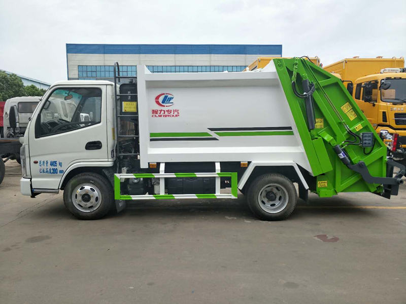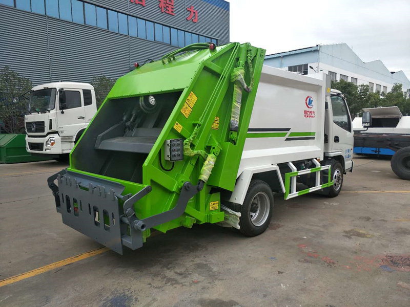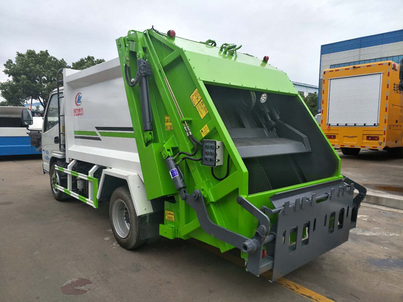 凱馬壓縮垃圾車容積為4m3,整車尺寸:5990×1990×2450mm,車輛后部設有垃圾填料工作裝置,僅安裝側下部防護裝置,側面裝置采用Q235鋼板以焊接和螺栓連接方式制作,截面尺寸100×50mm,后部垃圾填料裝置離地高度300mm,壓縮倍率3-4倍,壓縮后生活垃圾密度從0.36變為0.95以上,帶污水收集箱,新款平板式箱體更美觀,尾部帶密封橡膠墊,可防污水滴漏二次污染。尾部可帶翻轉斗或掛桶裝置,可選裝PLC一鍵操控系統,駕駛室和尾部雙操控機構。